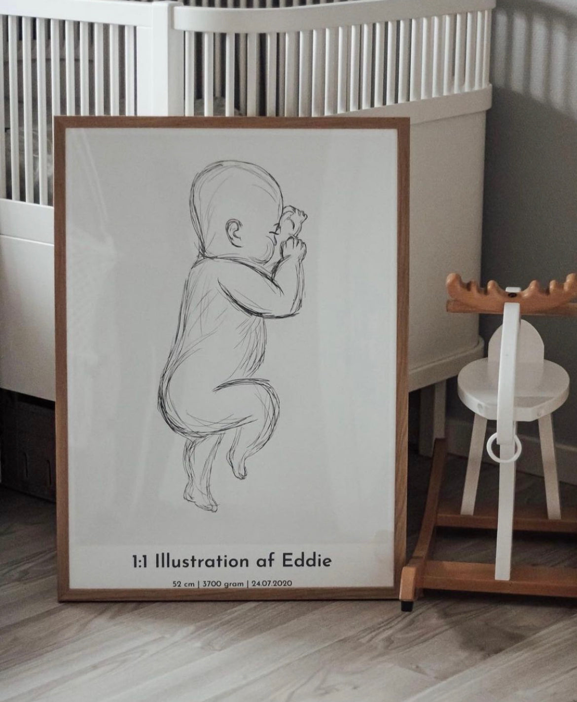 Unik babyplakat - Få tegnet dit nyfødte barn